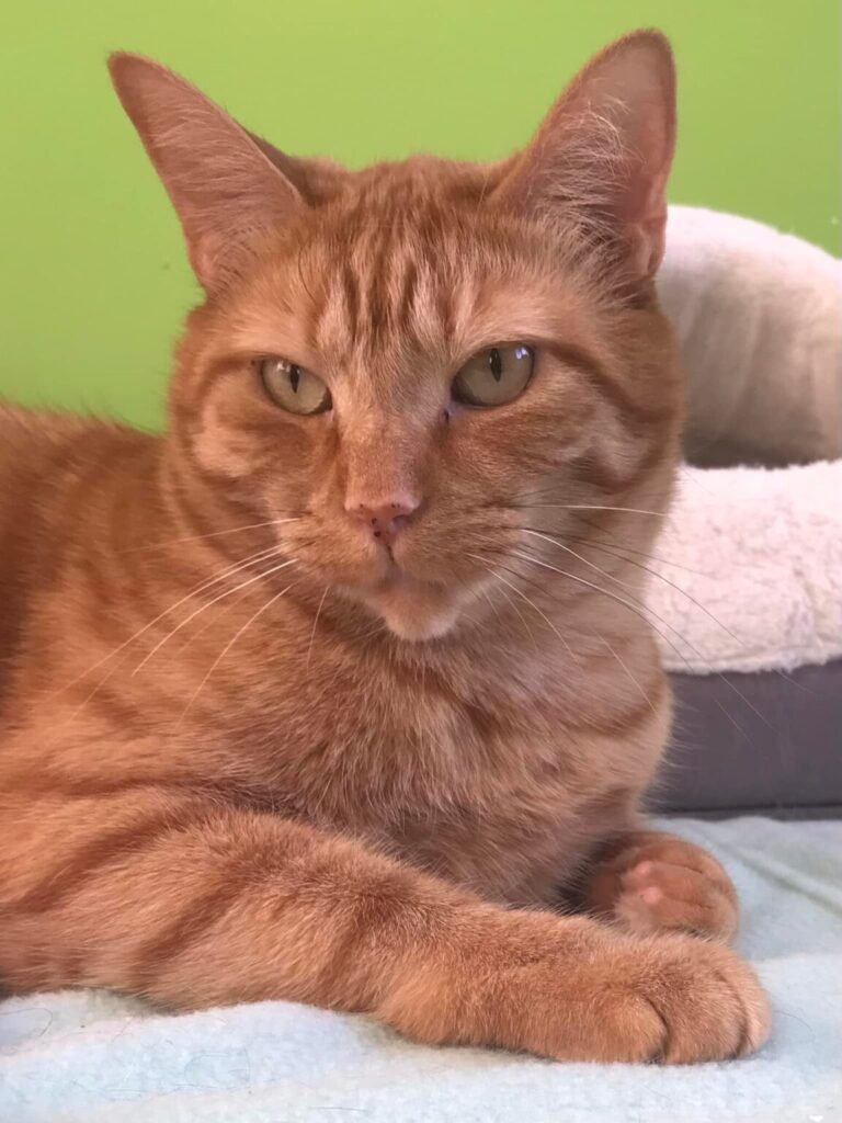 Anatole came to the shelter due to a case of mistaken identity. Volunteers were searching for a ginger cat named Antchuk in Anjou. Someone called in to report that she had found the cat and brought him into her home. However, upon seeing the ginger cat, we realized it wasn’t the one we were looking for, but Anatole still needed help. So, we brought him back to the shelter. Anatole had a minor limp, prompting a visit to the vet for X-rays and additional tests. The veterinarian discovered multiple micro-fractures in his pelvis that had healed incorrectly. It was suspected that he’d been hit by a car.